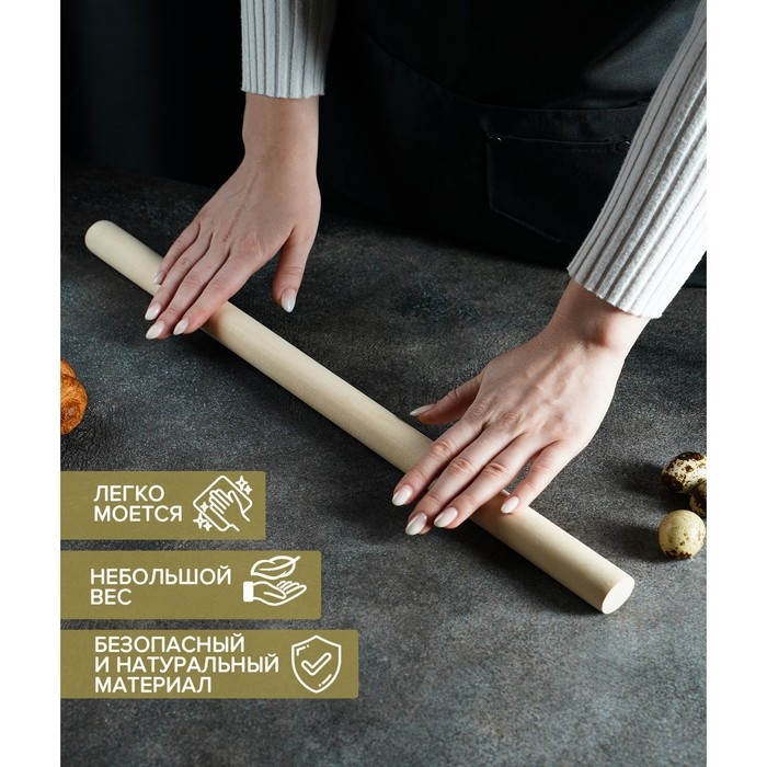 Скалка прямая Доляна, 50×4.3 см, берёза