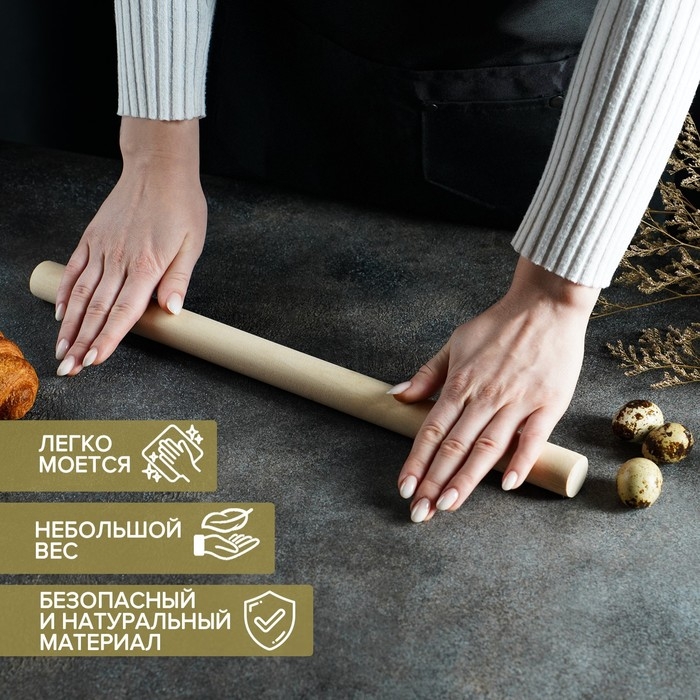 Скалка прямая Доляна, 50×4.3 см, берёза