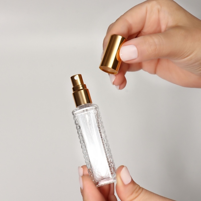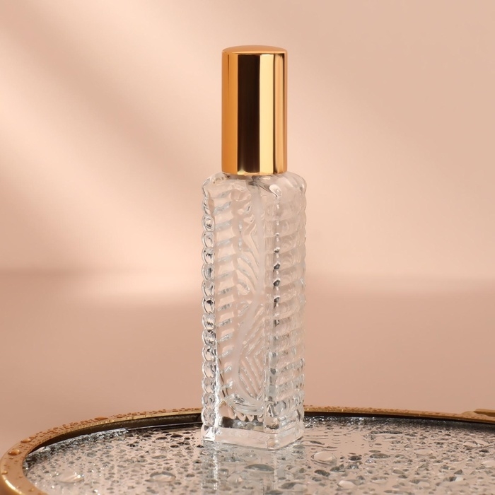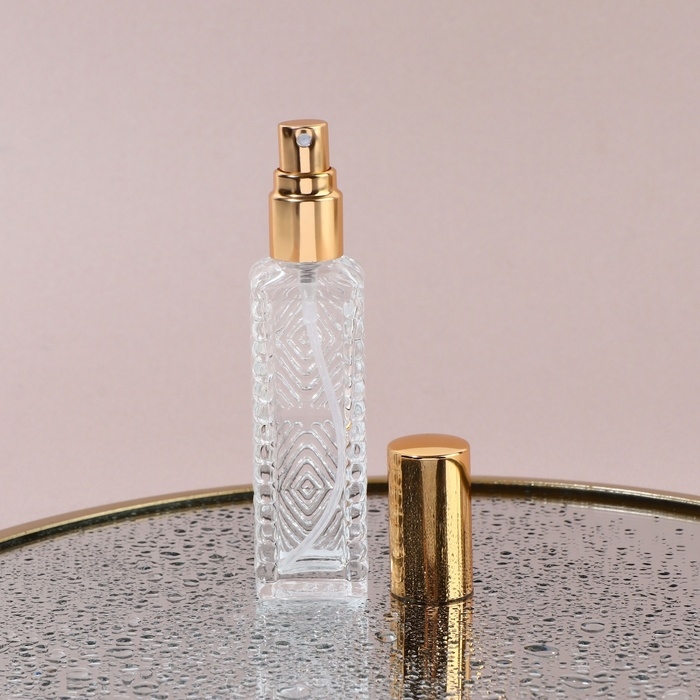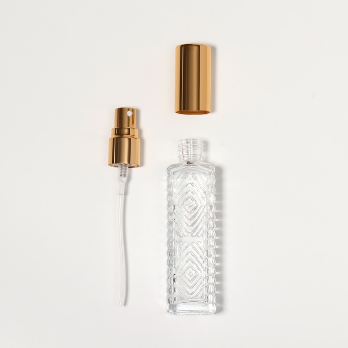 Флакон для парфюма «Прозрачный узор», с распылителем, 15 мл, цвет золотистый