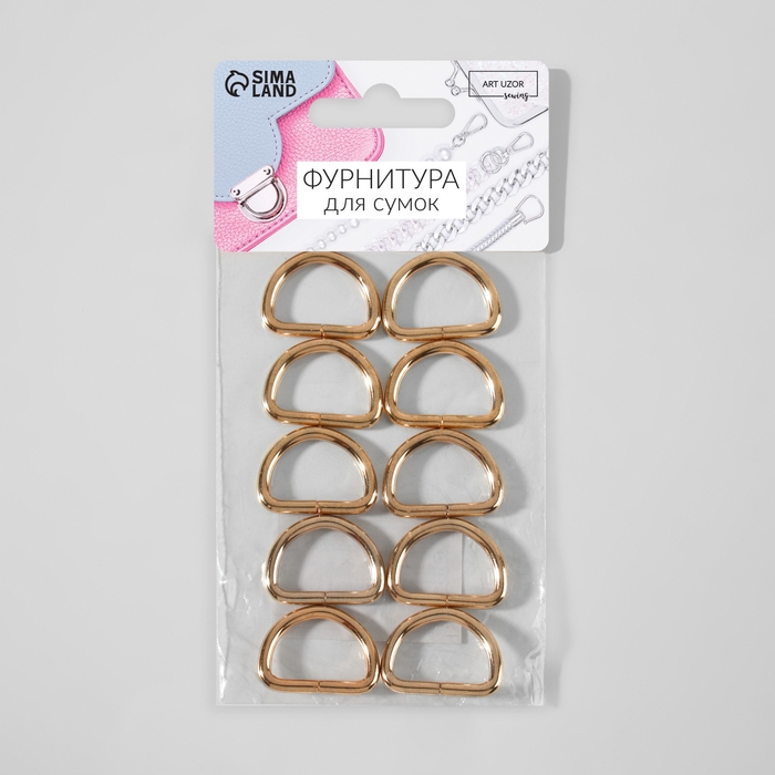 Полукольца для сумок, d = 20 мм, толщина - 3 мм, 10 шт, цвет золотой