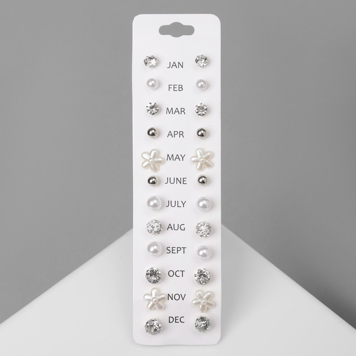 Пусеты 6 пар «Жемчужные» минимал d=8-11 мм, цвет белый в серебре