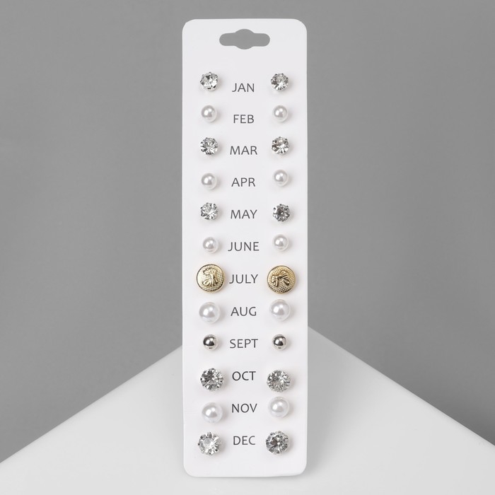 Пусеты 12 пар One year, строгий стиль, цвет МИКС
