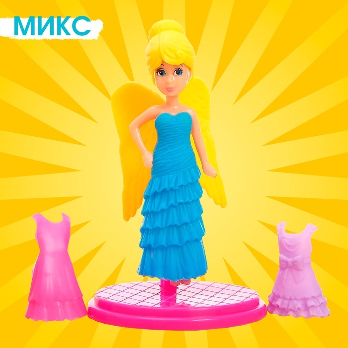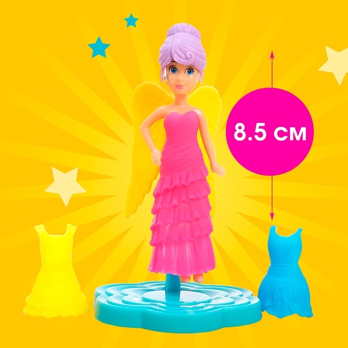 У куколки длинные, цветные волосы. Нежное платье и крылышки создают сказочный образ. В комплекте 2 дополнительных платья и подставка. Крылья снимаются. Кукла полностью разбирается, одежда снимается.