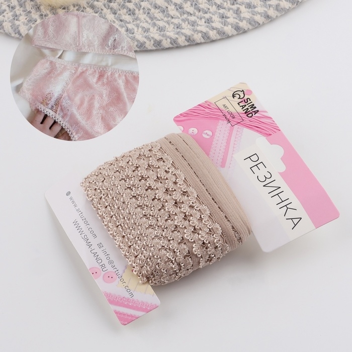 Резинка ажурная бельевая, 14 мм, 10 ± 1 м, цвет бежевый