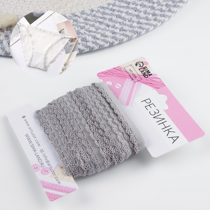 Резинка ажурная бельевая, 11 мм, 10 ± 1 м, цвет серый