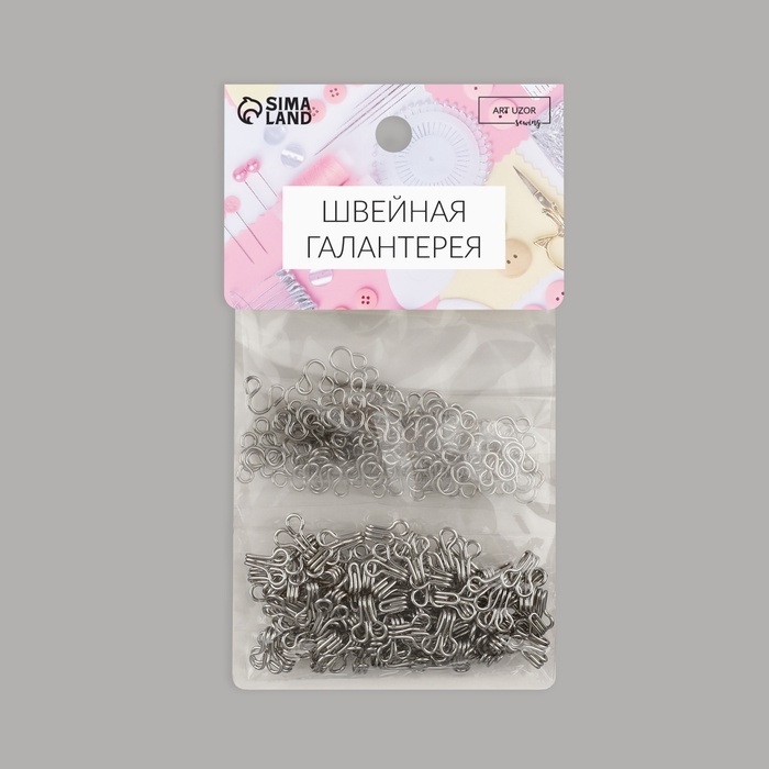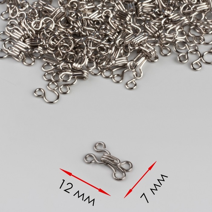 Крючок пришивной №1, 12 × 7 мм, 100 шт, цвет серебряный