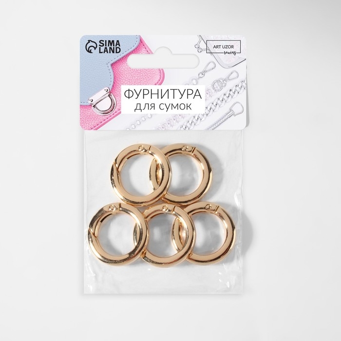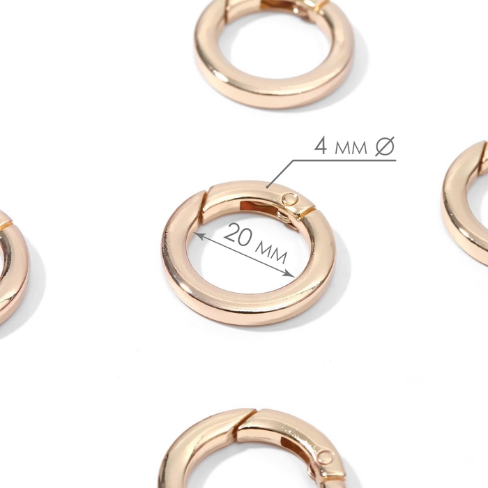 Кольцо-карабин плоский, d = 20/28 мм, толщина - 4 мм, 5 шт, цвет золотой