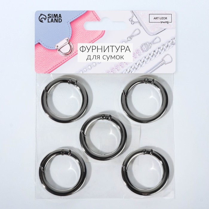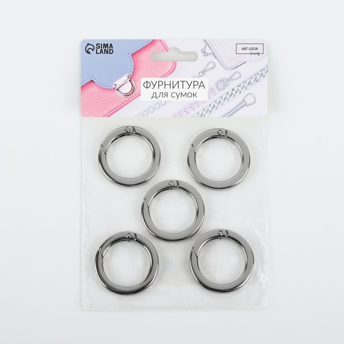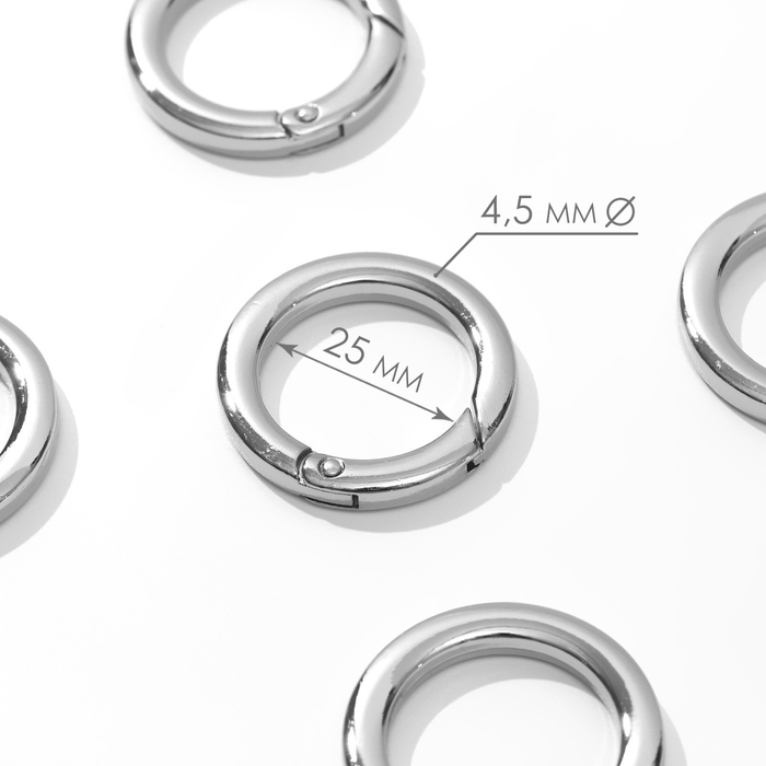 Кольцо-карабин плоский, d = 25/34 мм, толщина - 4,5 мм, 5 шт, цвет серебряный