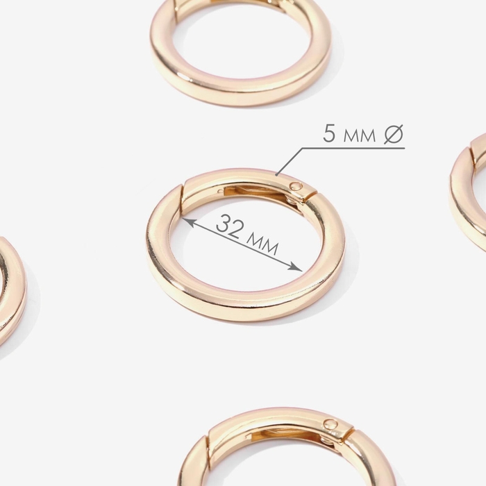 Кольцо-карабин плоский, d = 32/42 мм, толщина - 5 мм, 5 шт, цвет золотой