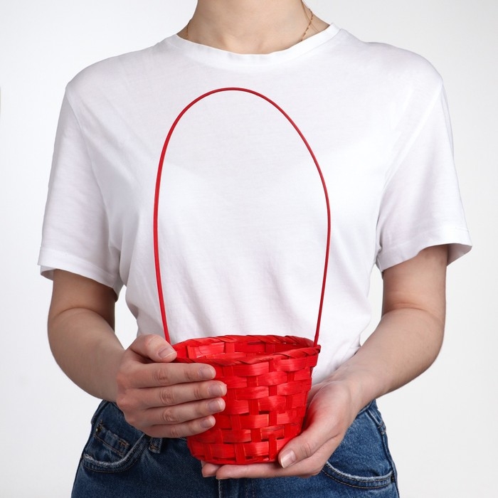 Корзина плетеная, бамбук, D13xH9.5/28 см, красный