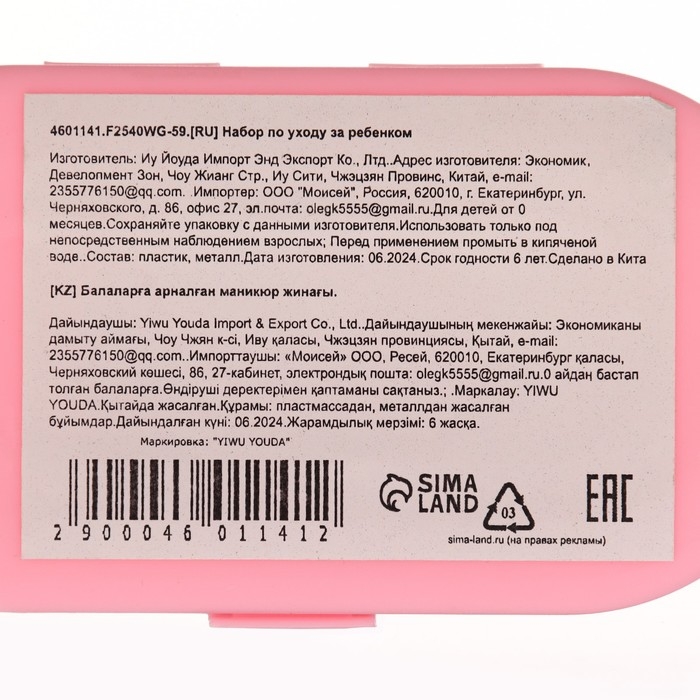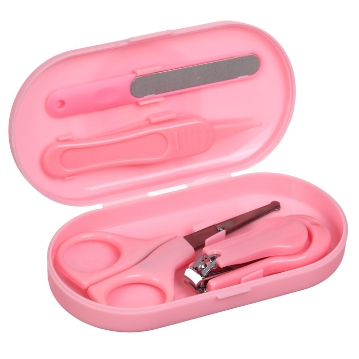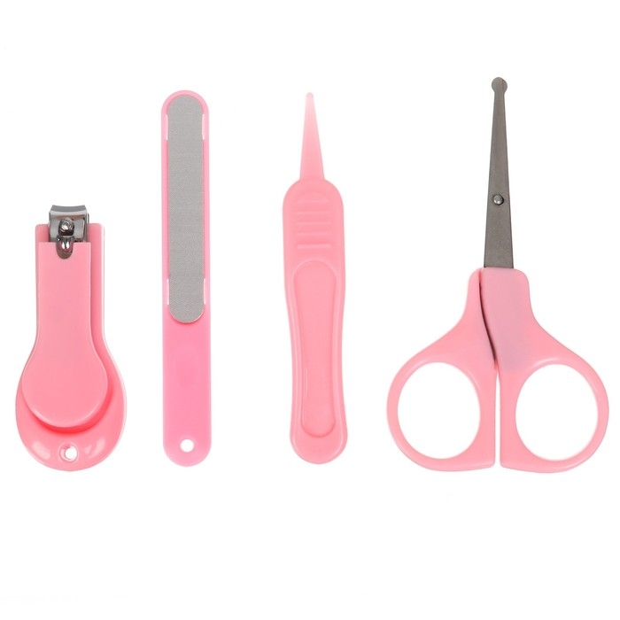 Детский маникюрный набор (ножницы, книпсер, пилка, пинцет), цвет розовый