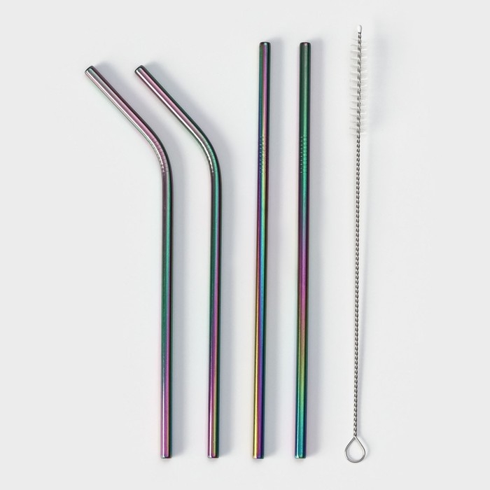 Набор металлических трубочек с ёршиком Color, 21 см, 4 шт