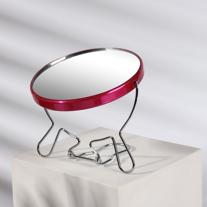 Зеркало настольное - подвесное «Круг», двустороннее, с увеличением, d зеркальной поверхности 9 см, цвет серебристый