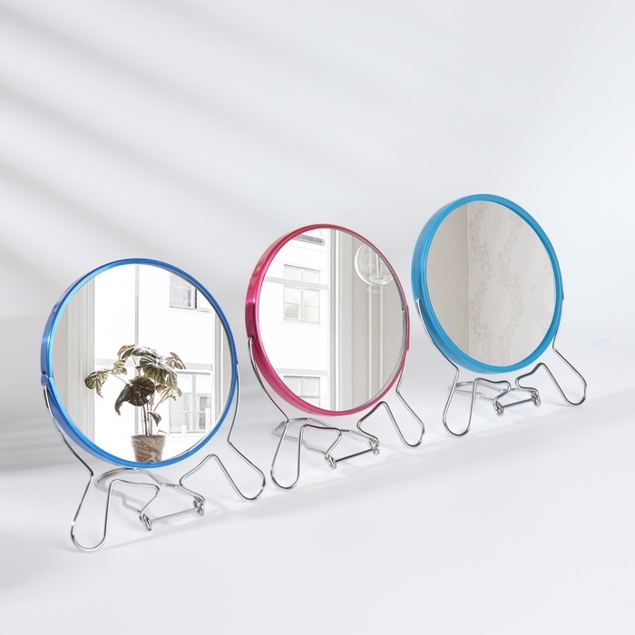Зеркало настольное - подвесное «Круг», двустороннее, с увеличением, d зеркальной поверхности 9 см, цвет МИКС