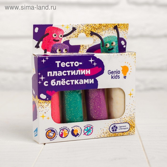 Набор для детской лепки «Тесто-пластилин 4 цвета с блёстками»