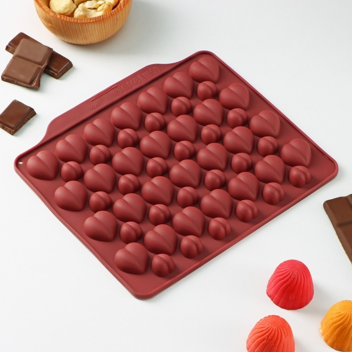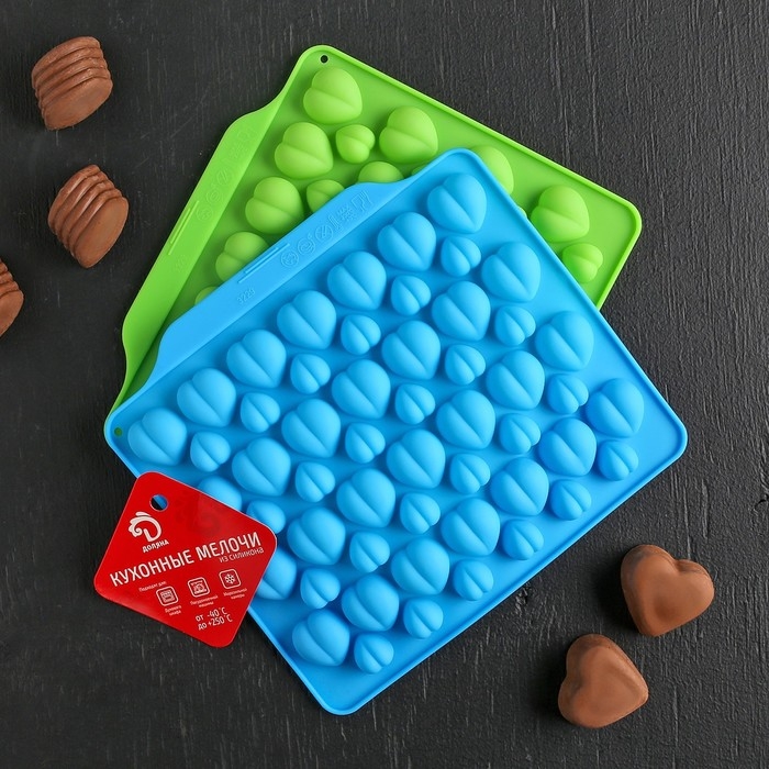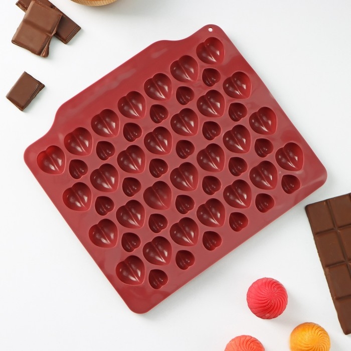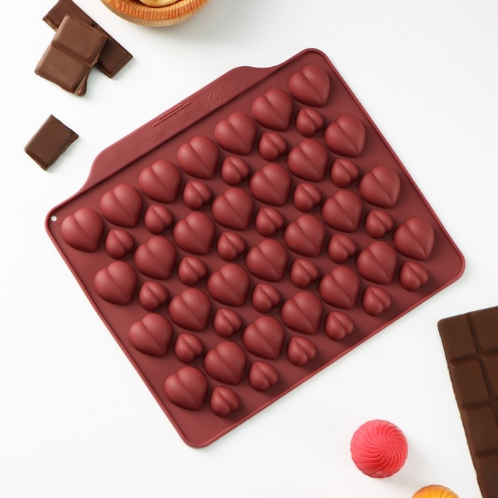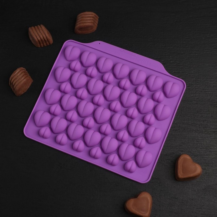 Форма для кондитерских украшений Доляна «Море сердец», силикон, 18×15×1 см, 52 ячейки, цвет МИКС