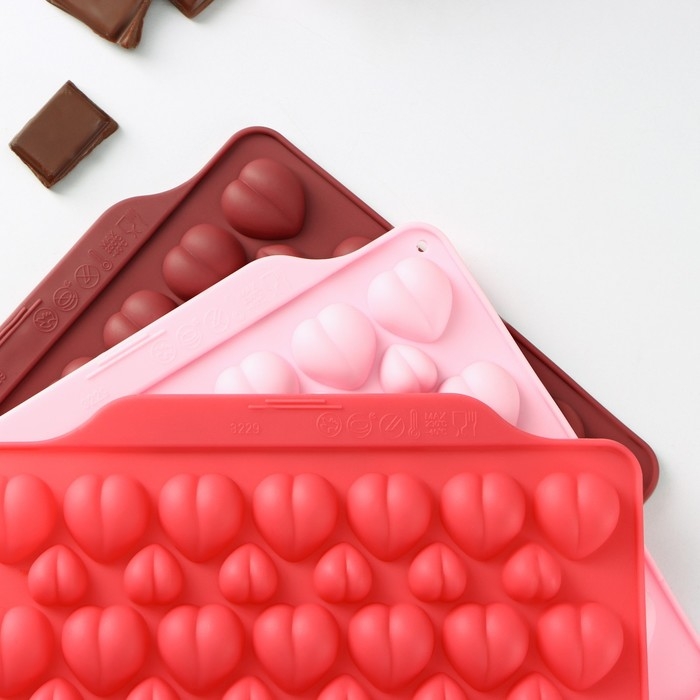 Форма для конфет и шоколада Доляна «Сердечко», силикон, 21×10 см, 15 ячеек (2,7×2,8 см), цвет МИКС