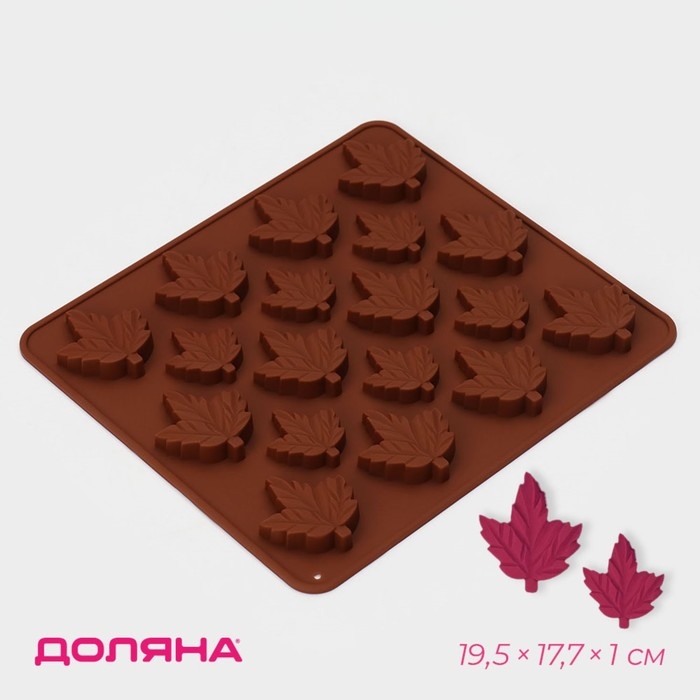 Форма для конфет и шоколада Доляна «Кленовый сироп», силикон, 19,5×17,7×1 см, 18 ячеек, цвет коричневый