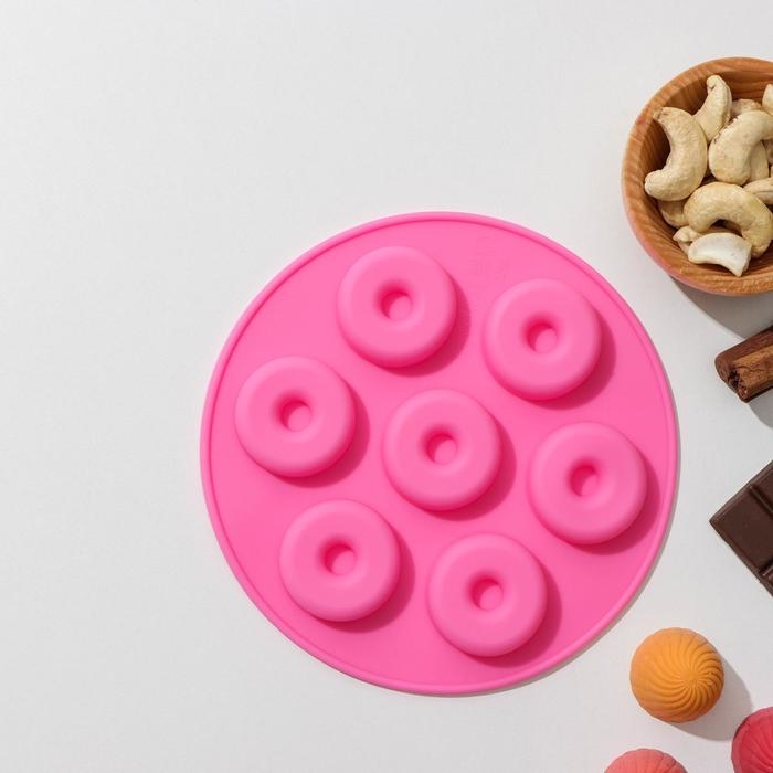 Форма для шоколада Доляна «Пончики», силикон, 15,5×1,3 см, 7 ячеек, цвет МИКС