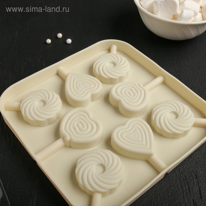 Форма для леденцов Доляна «Свидание», силикон, 14,5×14,5×1,5 см, 8 ячеек (3,5×3,5 см), с палочками, цвет МИКС