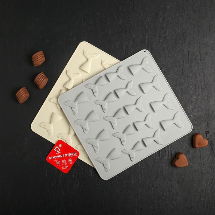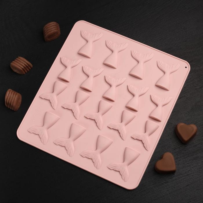 Форма для шоколада Доляна «Хвост», силикон, 25×22,5×0,4 см, 18 ячеек (5,3×4 см), цвет МИКС