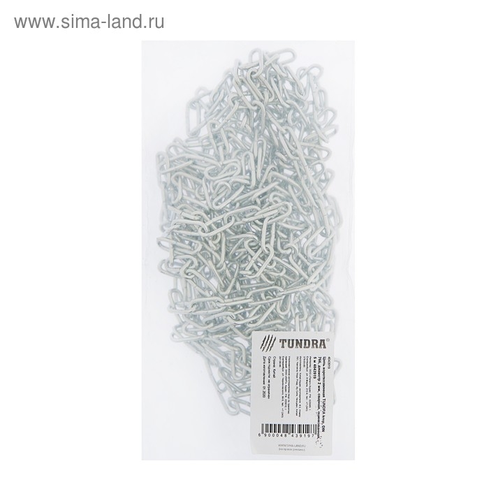 Цепь короткозвенная ТУНДРА krep, DIN766, диаметр 2 мм, сварная, оцинкованная, 5 м