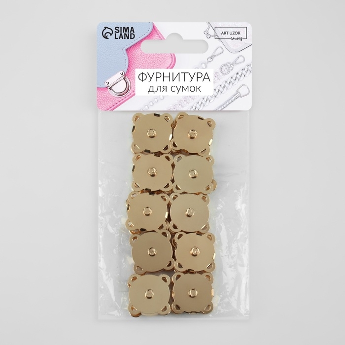 Кнопки магнитные, пришивные, d = 18 мм, 10 шт, цвет золотой