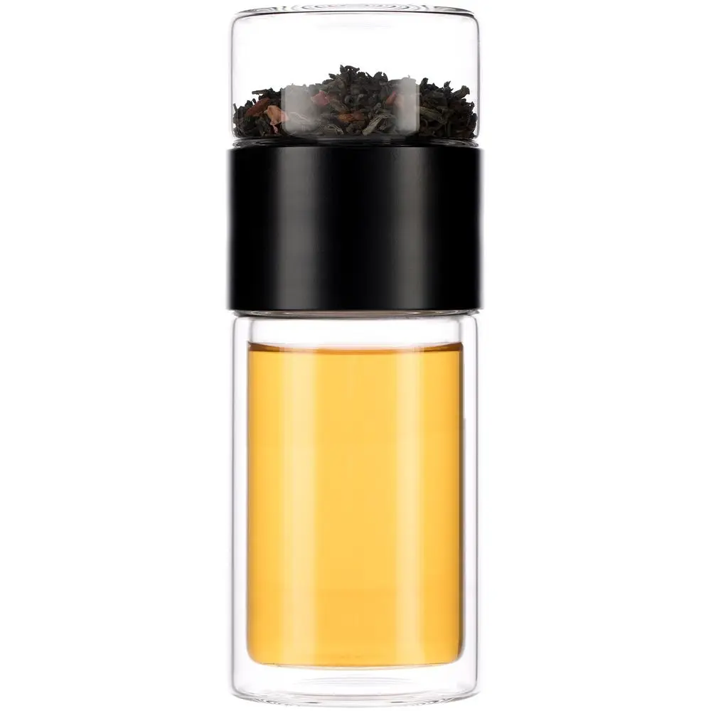 Благодаря конструкции с двумя отсеками, разделенными сетчатым фильтром, можно остановить процесс заваривания в любой момент — просто перевернув бутылку. Так настой не получится слишком крепким, а чайный лист получится залить кипятком еще несколько раз, имитируя традиционный способ заваривания проливами. Объема получившегося напитка как раз хватит на стандартную офисную кружку (около 300 мл).