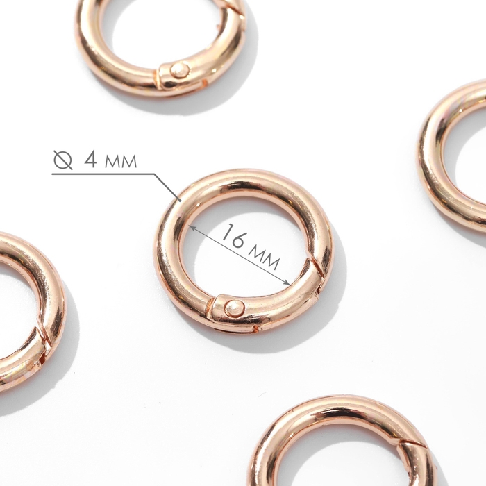 Кольцо-карабин, d = 16/24 мм, толщина - 4 мм, 5 шт, цвет золотой