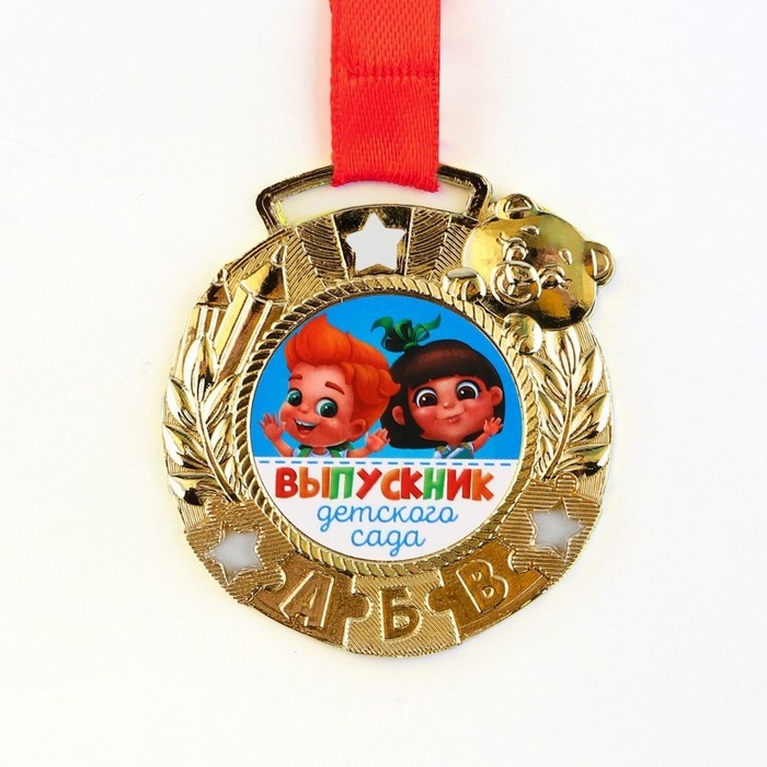 Медаль детская на Выпускной «Выпускник детского сада», на ленте, золото, металл, d = 5,5 см
