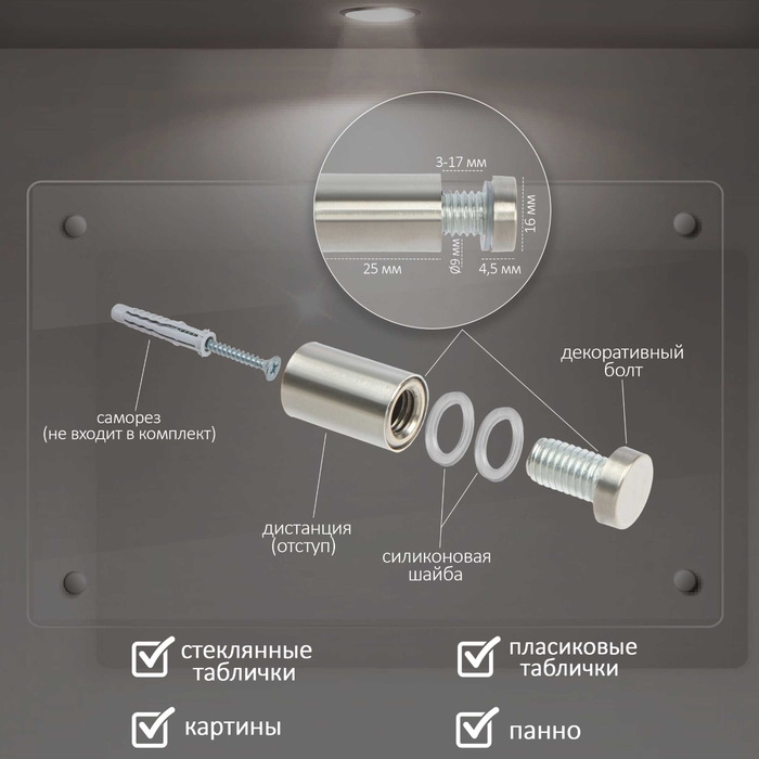Дистанционный держатель предназначен для закрепления информационных табличек на определенном расстоянии от стены.