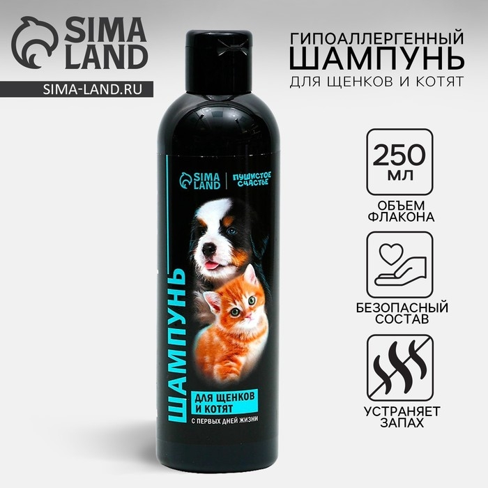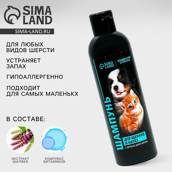 Шампунь для щенков и котят предназначен для ухода за шерстью и кожным покровом животных.