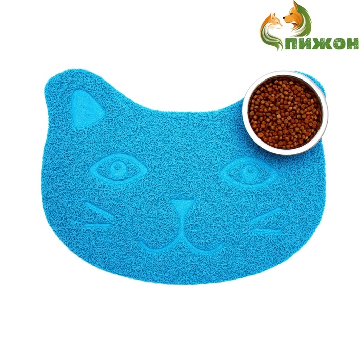 Коврик 2-в-1 под миску/туалет животных "Киса", 40 х 30 см, голубой