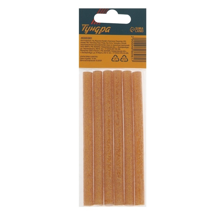 Клеевые стержни ТУНДРА, 7 х 100 мм, золотистые с блестками, 6 шт.