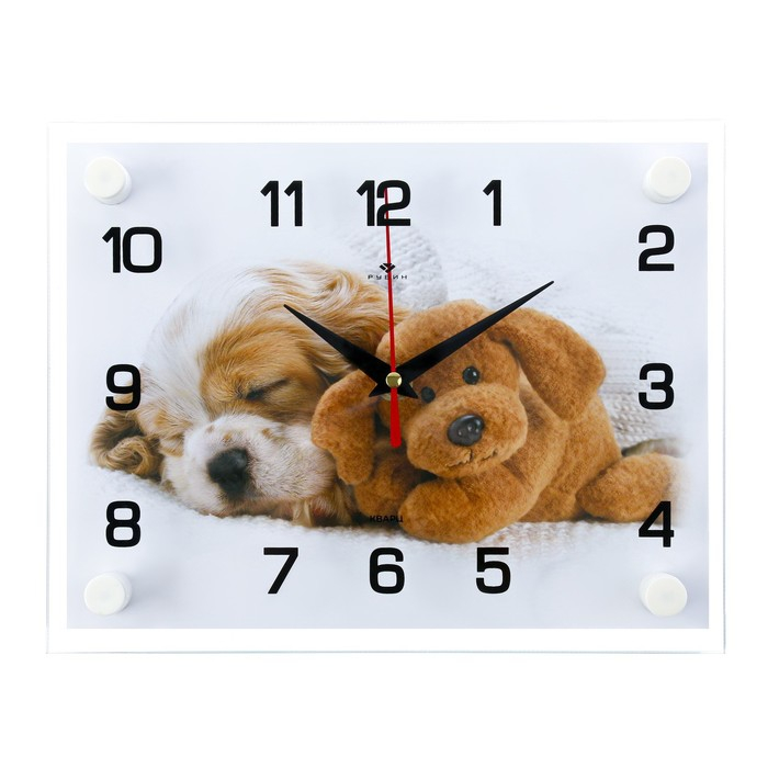 Часы настенные, интерьерные "Щенок и мишка", бесшумные, 20 х 26 см