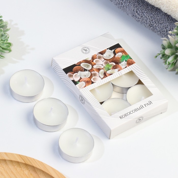 Набор чайных свечей ароматизированных "Кокосовый рай" в подарочной коробке, 6 шт
