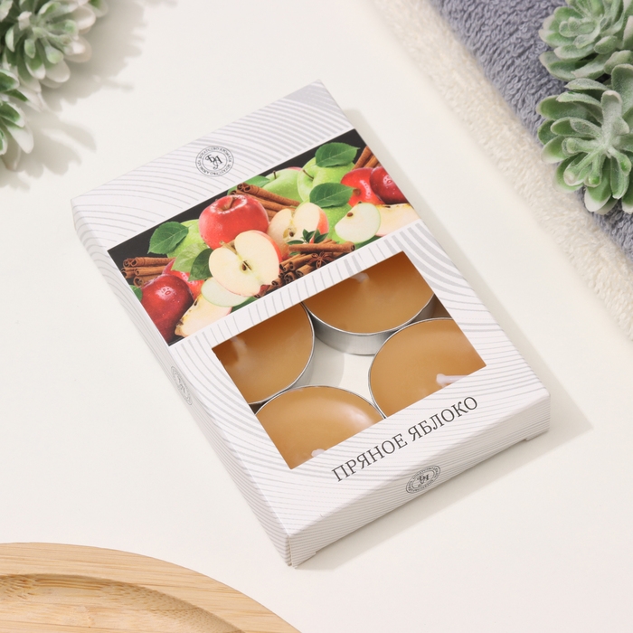Набор чайных свечей ароматизированных "Пряное яблоко" в подарочной коробке, 6 шт