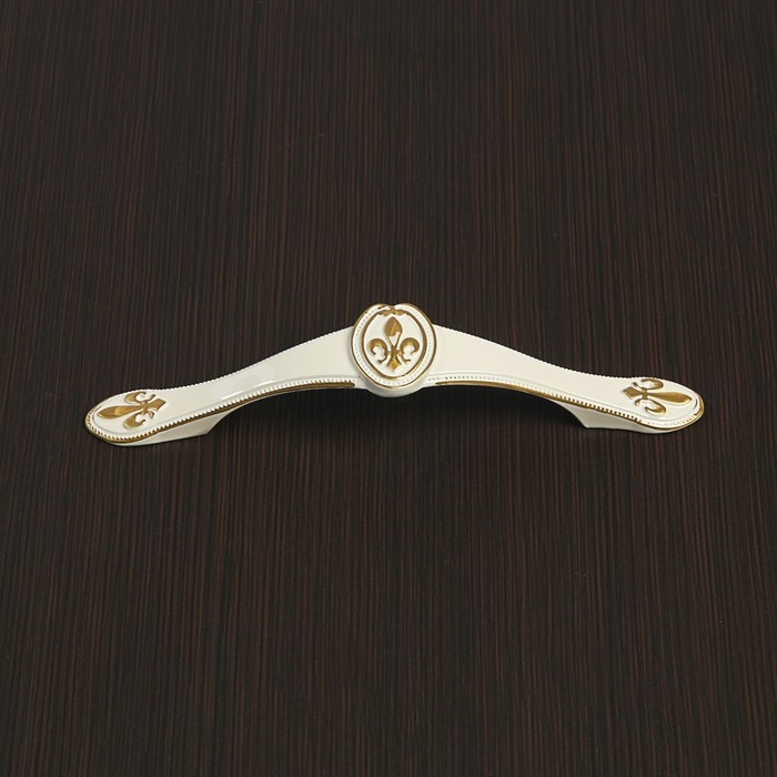 Интересный дизайн ручки сочетается с различными типами мебельного гарнитура. Фурнитура имеет привлекательный внешний вид и компактный размер. Белый оттенок с золотистыми вставками идеально подходит к мебельным фасадам в различной цветовой гамме.