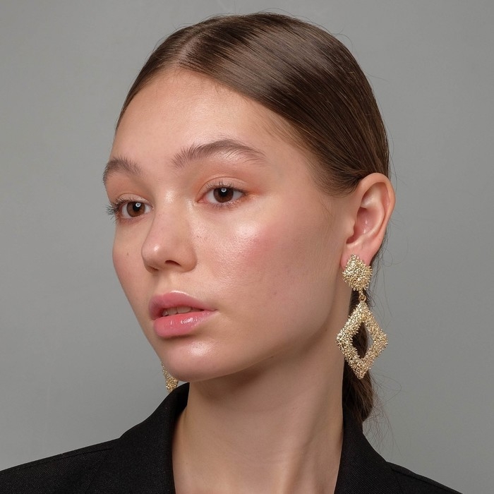Серьги металл «Карибы» ромб, цвет золото