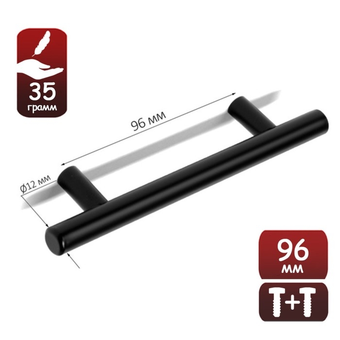 Ручка рейлинг CAPPIO FRIDA, нерж. сталь, d=12 мм, м/о 96 мм, цвет черный