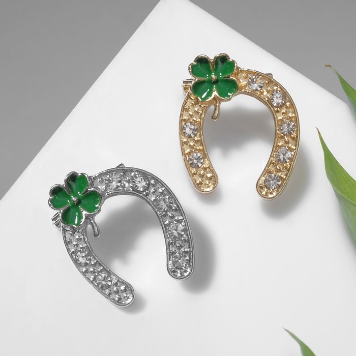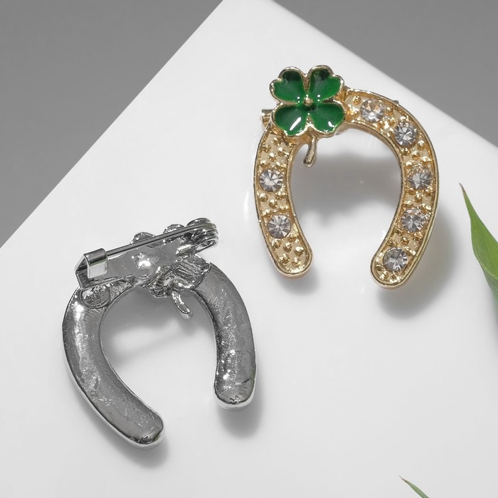 Брошь «Подкова» на удачу с клевером, цвет МИКС (неделимая фасовка 12 шт., цена за шт.)