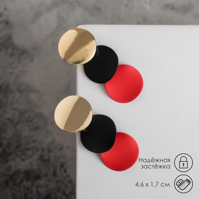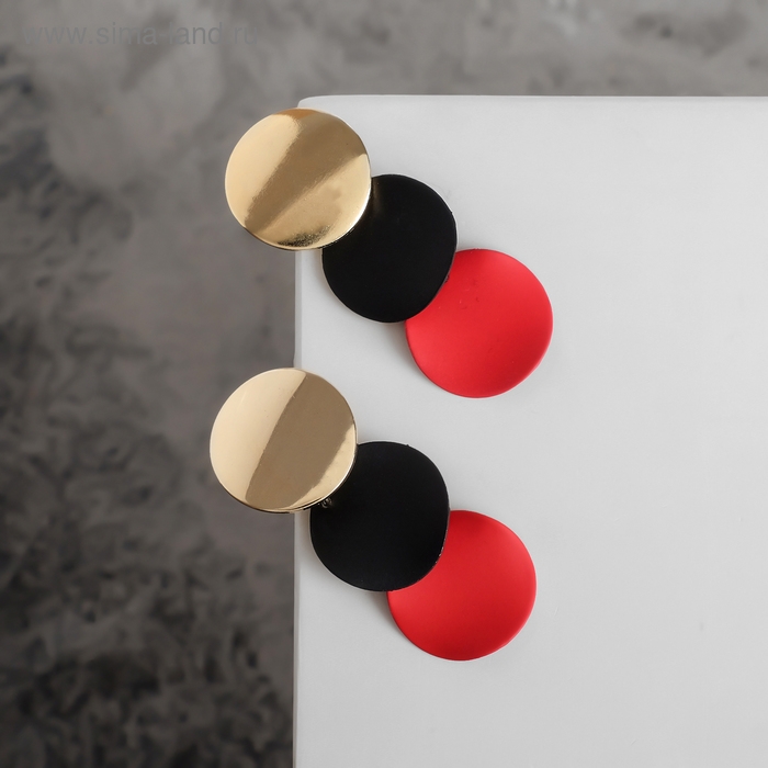 Серьги металл «Азелия» выгнутые круги, цвет красно-чёрный в золоте
