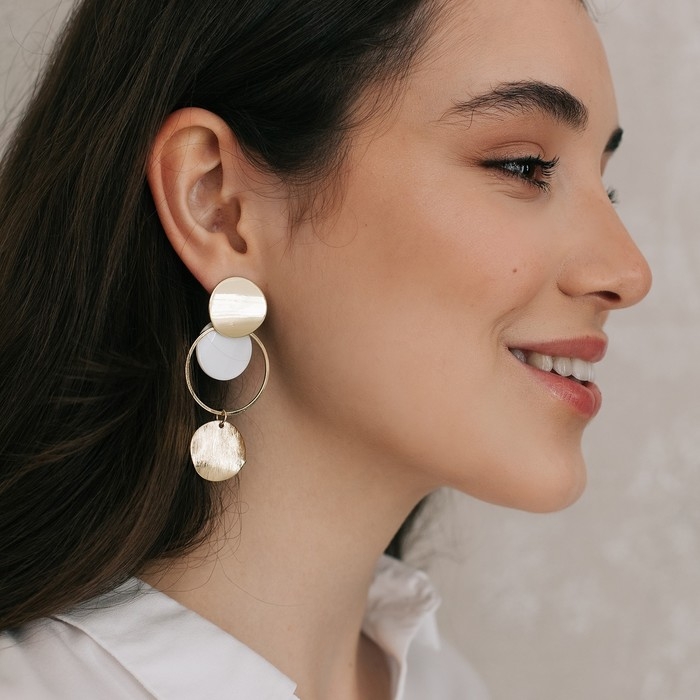 Серьги с перламутром «Сиа» мятые диски, цвет белый в золоте