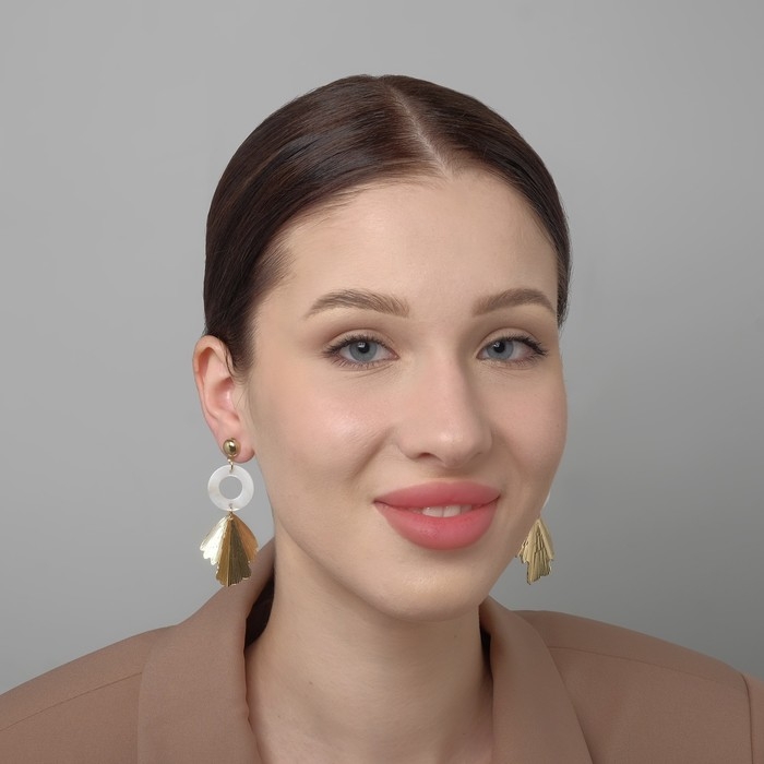 Серьги с перламутром «Сиа» листочек, цвет белый в золоте