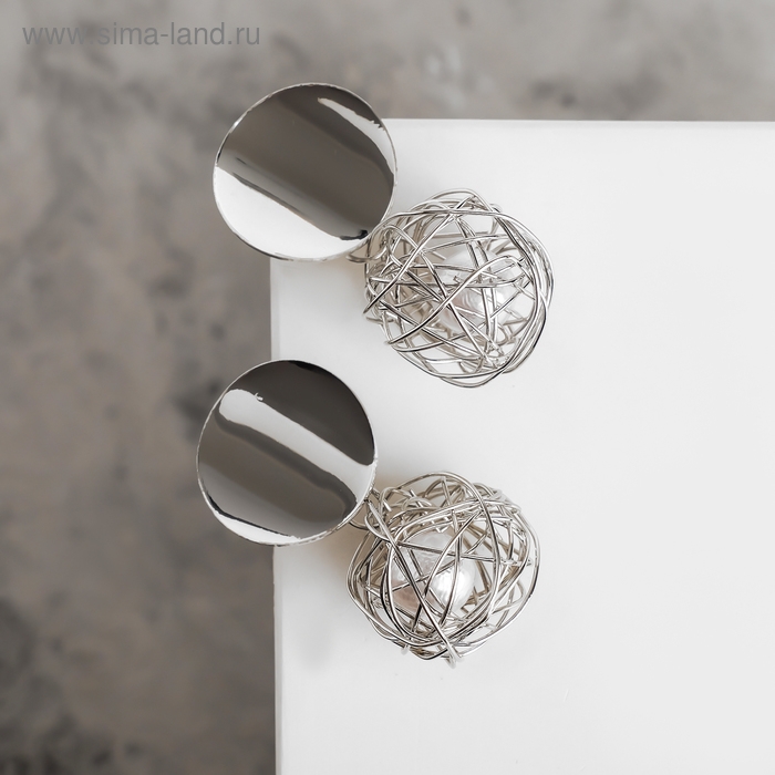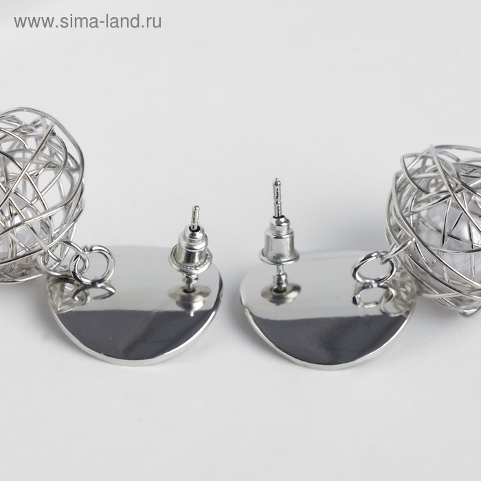 Серьги с жемчугом «Шар плетёный» гнездо, цвет белый в серебре
