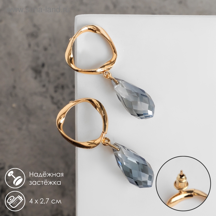 Серьги со стразами «Сиа» капли, цвет синий в золоте