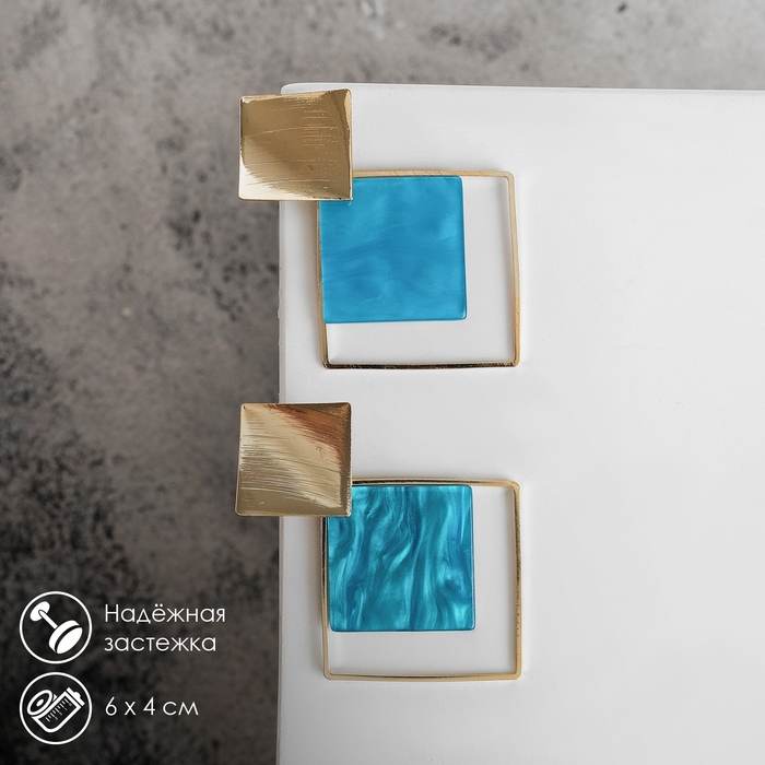 Серьги ассорти «Азелия» ромбы, цвет бирюзовый в золоте