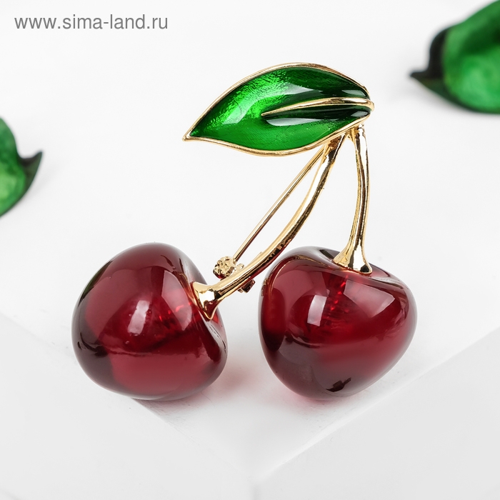 Брошь «Вишня» наливная, цвет бордово-зелёный в золоте