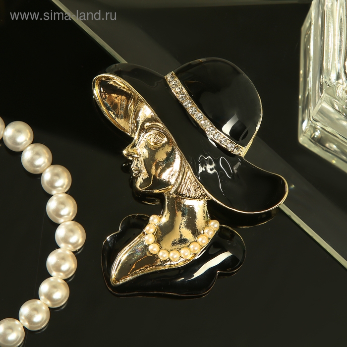 Брошь «Дама в шляпке», цвет чёрно-белый в золоте
