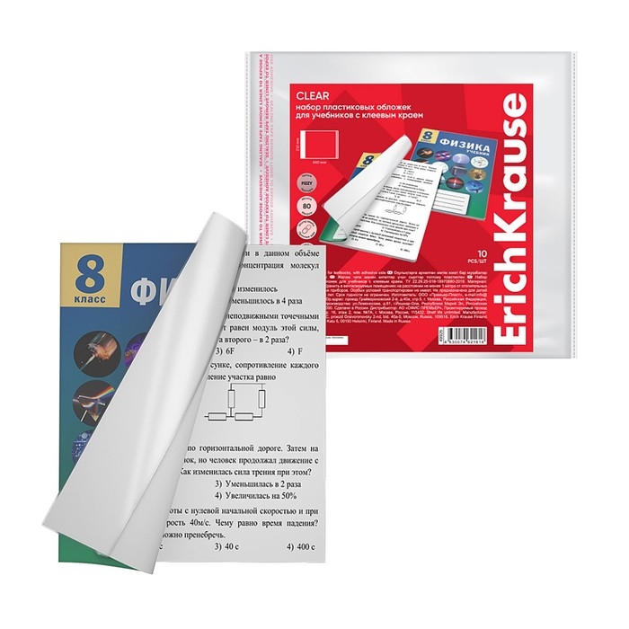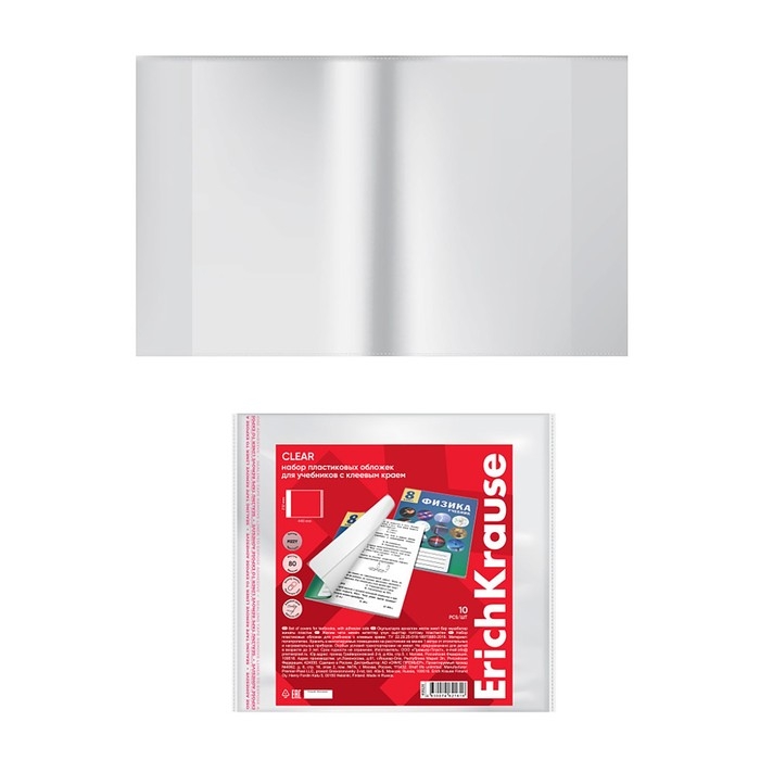 Набор обложек ПП 10 шт, 232 х 440 мм, 80 мкм, ErichKrause "Fizzy Clear", для учебников, с клеевым краем, с тиснением
